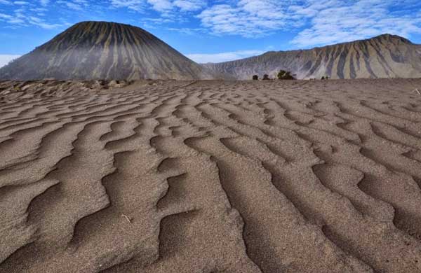 Pasir Berbisik Objek wisata Bromo yang ketiga adalah Pasir Berbisik. Sebelum sampai kawah, Anda akan disambut dengan pemandangan hamparan pasir yang cukup luas. Hamparan pasir ini diberi nama Pasir Berbisik. Areanya cukup luas, sehingga memudahkan pengunjung untuk mengambil spot terbaik guna berswafoto.